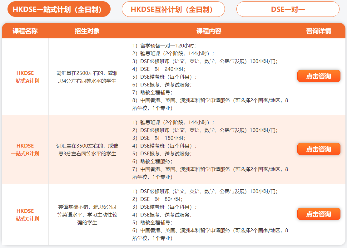 新航道锦秋DSE课程设置